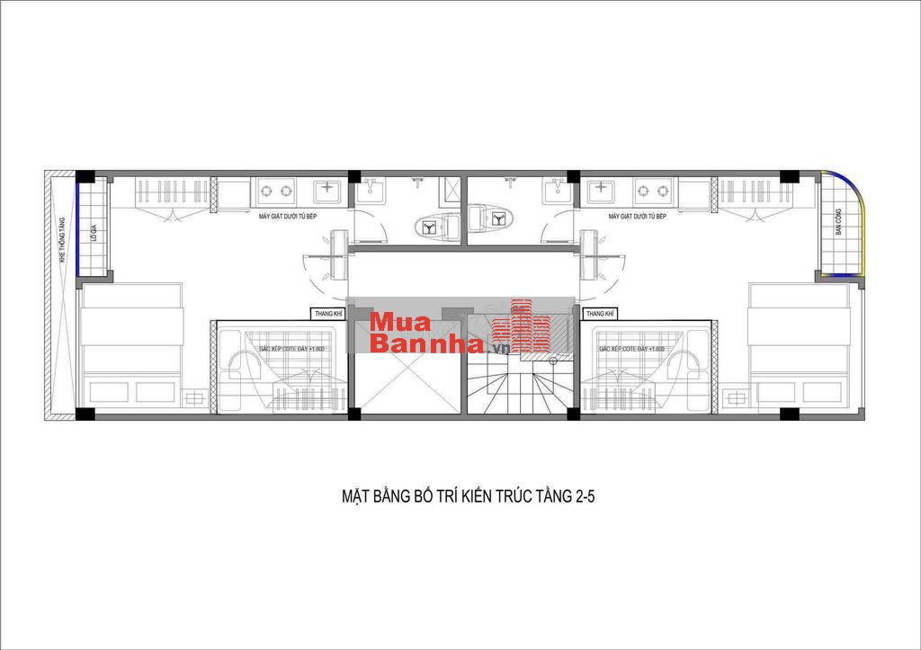 Mỗi sàn chia 2 căn hộ (mỗi căn 2n1k)
