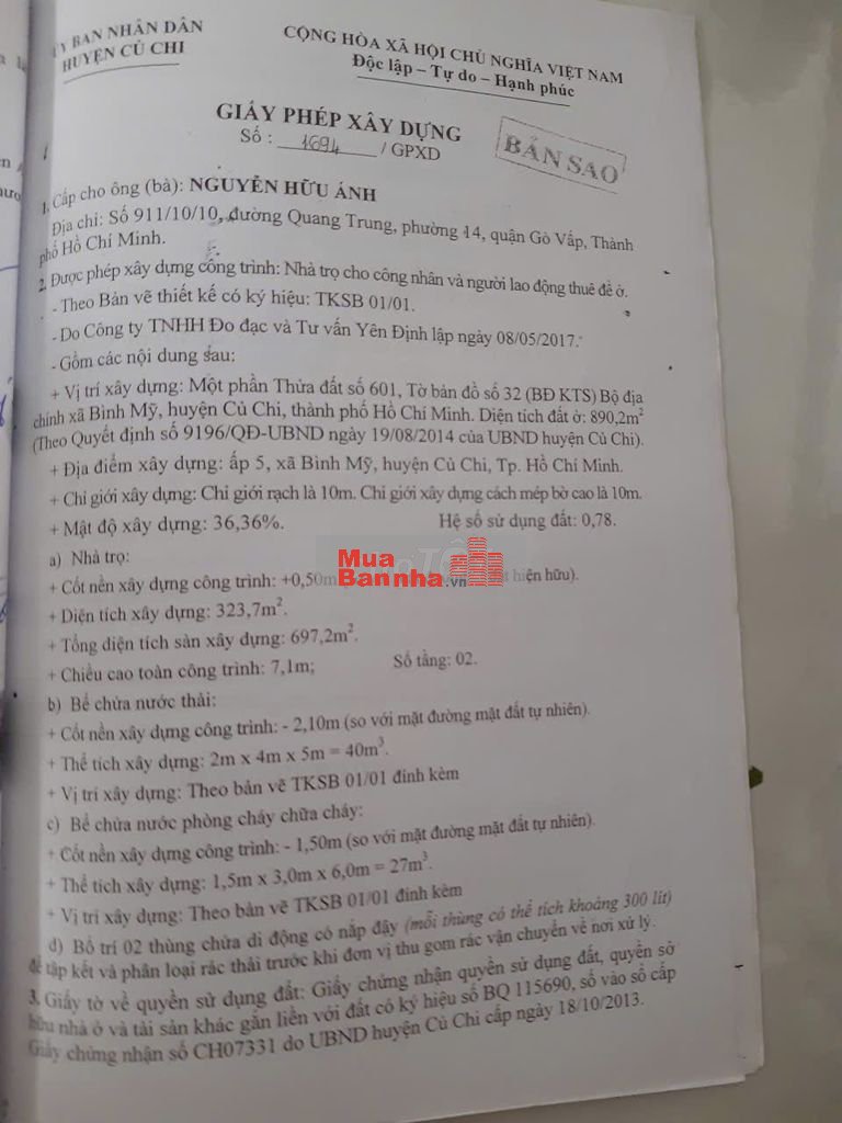 Quý vị đang xem nội dung tin rao "Cần bán nhà shc thổ cư, giấy phép xây dựng hẻm 4.5m". Mọi thông tin, nội dung liên quan tới tin rao này là do người đăng tin đăng tải và chịu trách nhiệm. Muabannha.vn luôn cố gắng để các thông tin được hữu ích nhất cho quý vị tuy nhiên Muabannha.vn không đảm bảo và không chịu trách nhiệm về bất kỳ thông tin, nội dung nào liên quan tới tin rao này.