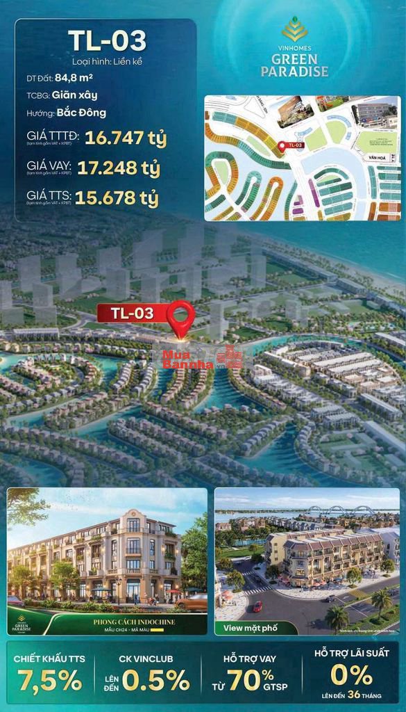 + Nếu K/H dùng phương thức hỗ trợ ngân hàng chỉ có vốn tự có 30% tương đương khoảng hơn 3 tỷ là có thể sở hữu ngay nhà phố thấp tầng tại Siêu đô thị nghỉ dưỡng sinh thái lấn biển.