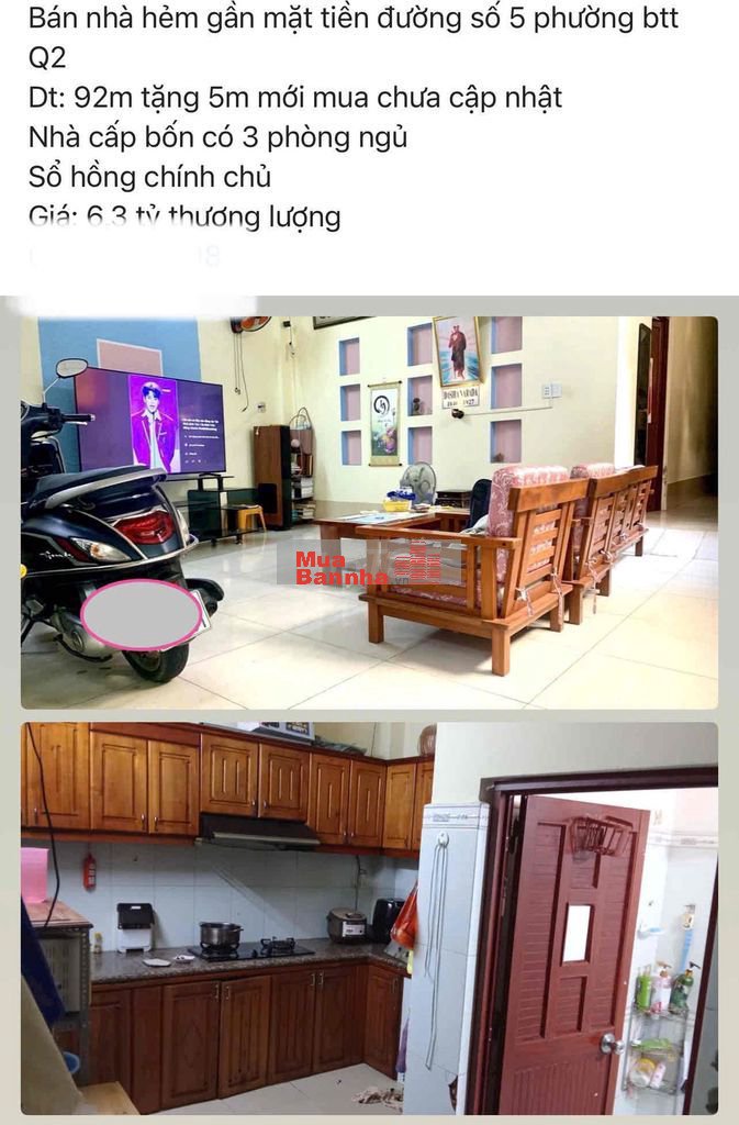 Bán nhà hẻm gần mặt tiền đường số 5 phường btt Q2