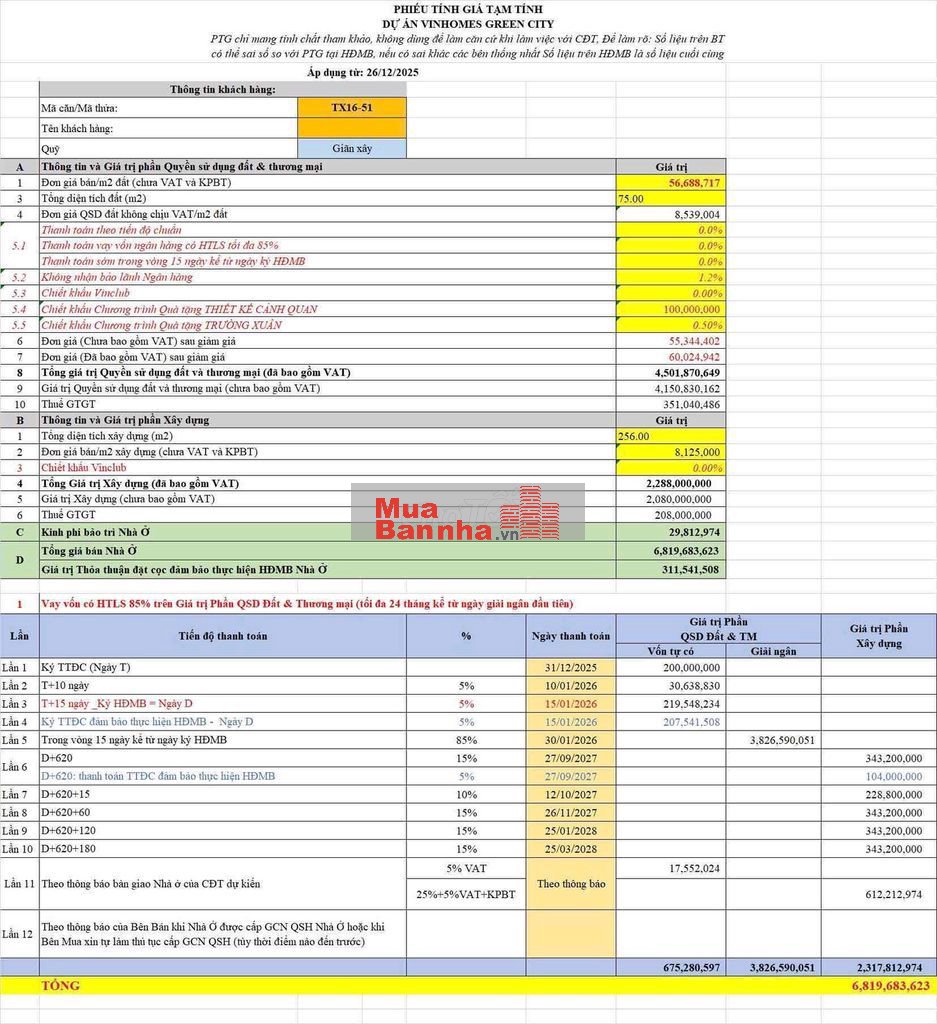 💵 Vốn ban đầu chỉ từ: ~1.316 tỷ (15%)