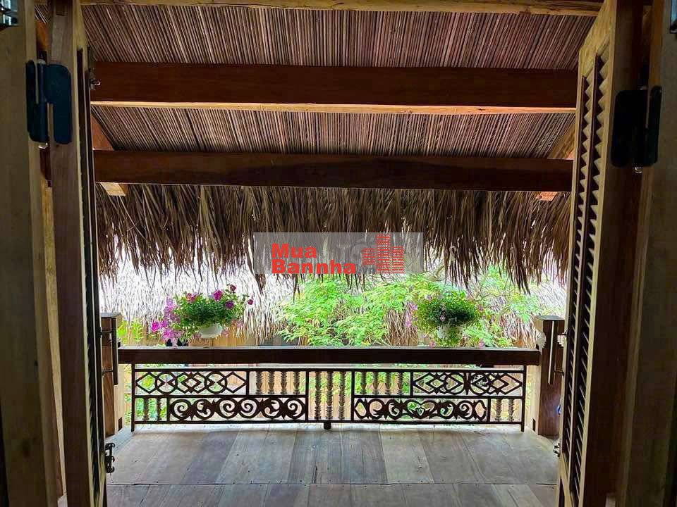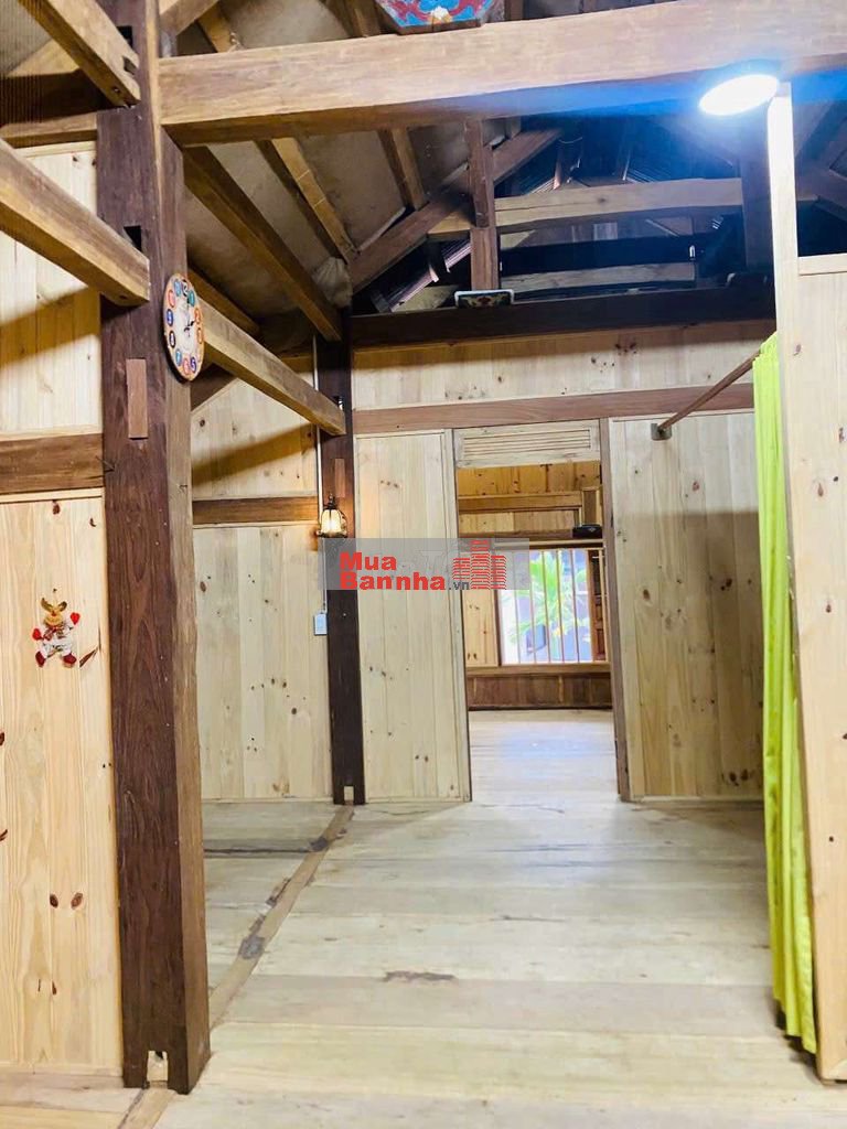 Có 2 căn nhà gỗ (1 nhà sàn 2 tầng 3PN–3WC ~70m²/sàn + 1 nhà trệt 35m²).