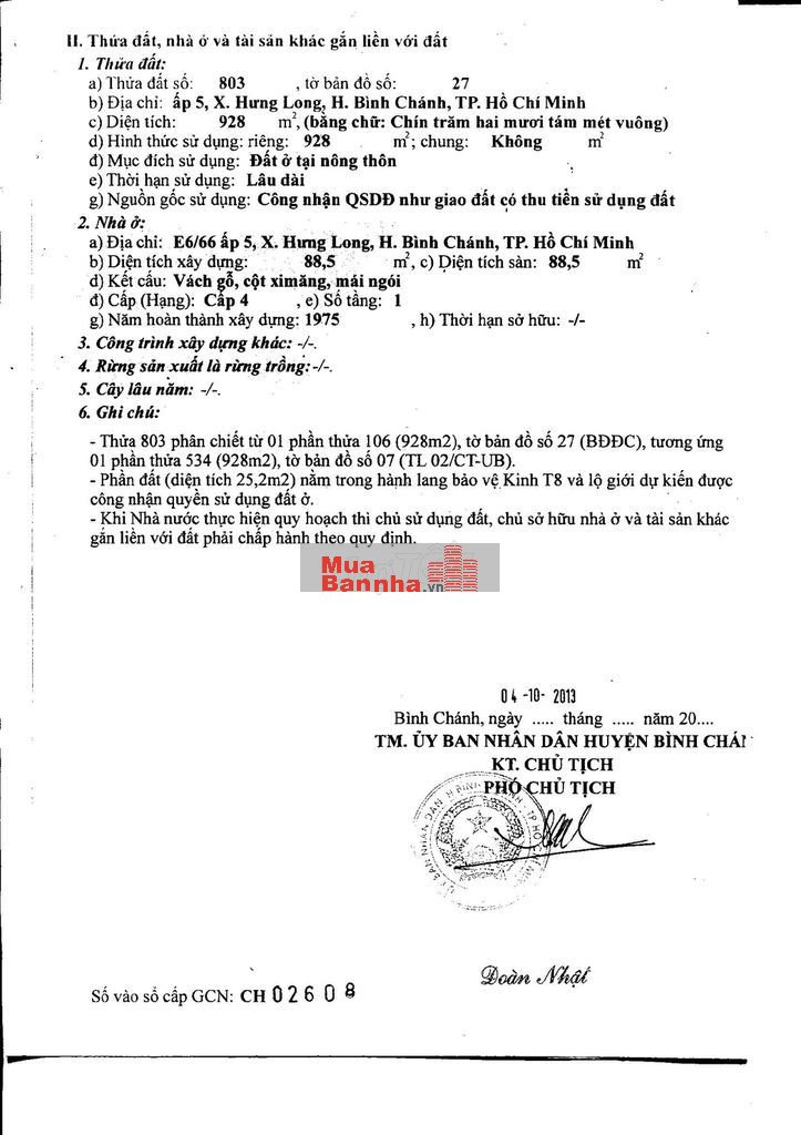 CHÍNH CHỦ BÁN 928 m2 ĐẤT Ở TẠI HƯNG LONG TPHCM