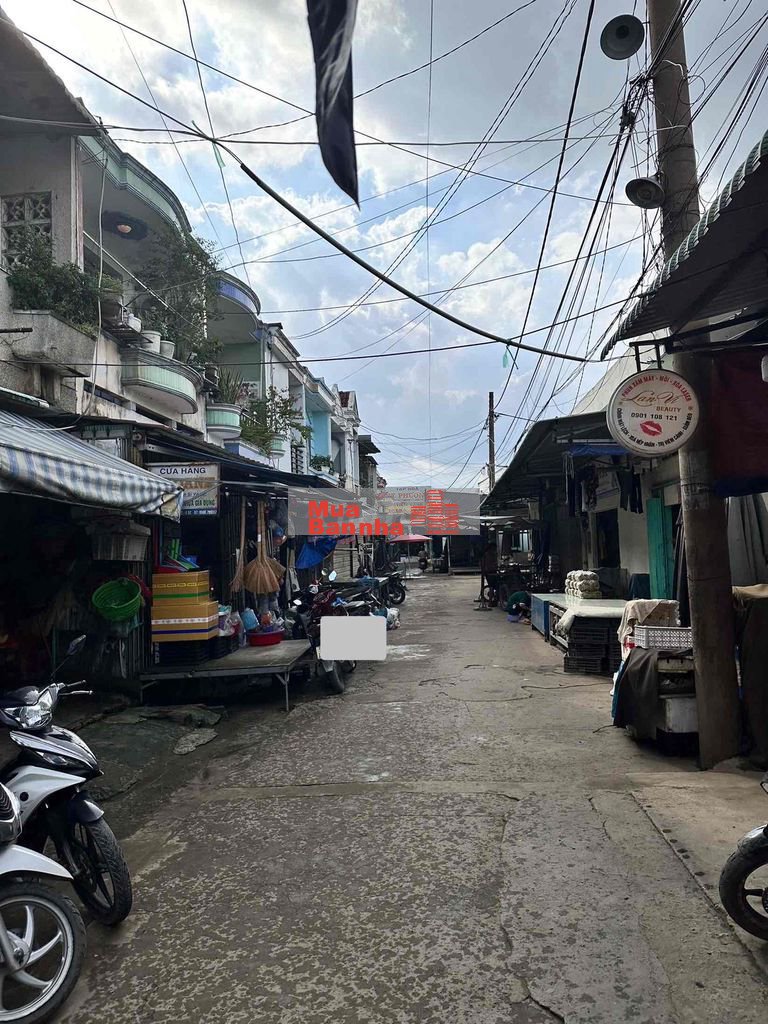 – Nhà đường xe hơi trong lồng chợ, chủ đang kinh doanh bán đồ nhựa.