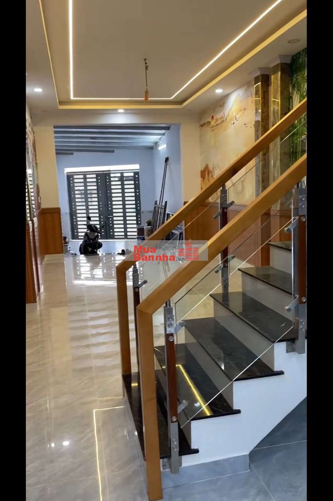 Nhà 1 trệt 1 lầu 3PN, 1P thờ, Ban công trước, giếng trời, sân trước đậu xe hơi