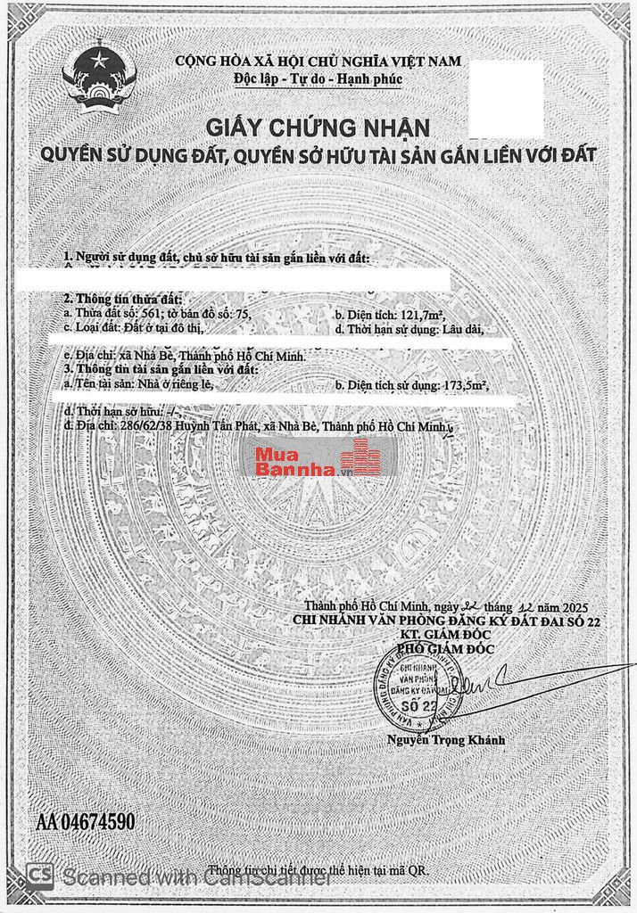 Sổ hồng chính chủ – cấp T12/2025.