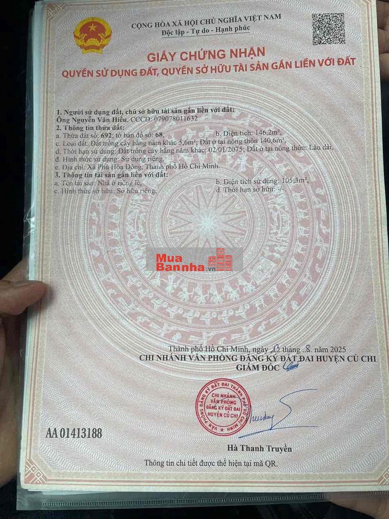 chính chủ gửi nhà hoàn công 146m2 thổ cư , ấp 3, xã tân thạnh đông, củ chi, tphcm (xã phú hoà đông mới) mặt tiền nhựa Lê Thị Đảo, thông xe ra tỉnh lộ 15 và chợ chiều
