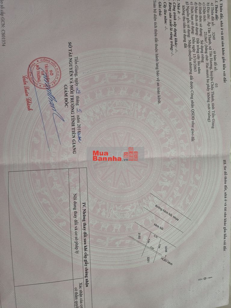 - Địa chỉ: Mặt tiền đường nhựa 7m, gần cổng trước KCN Tân Hương, xã Tân Hương, huyện Châu Thành, tỉnh Tiền Giang