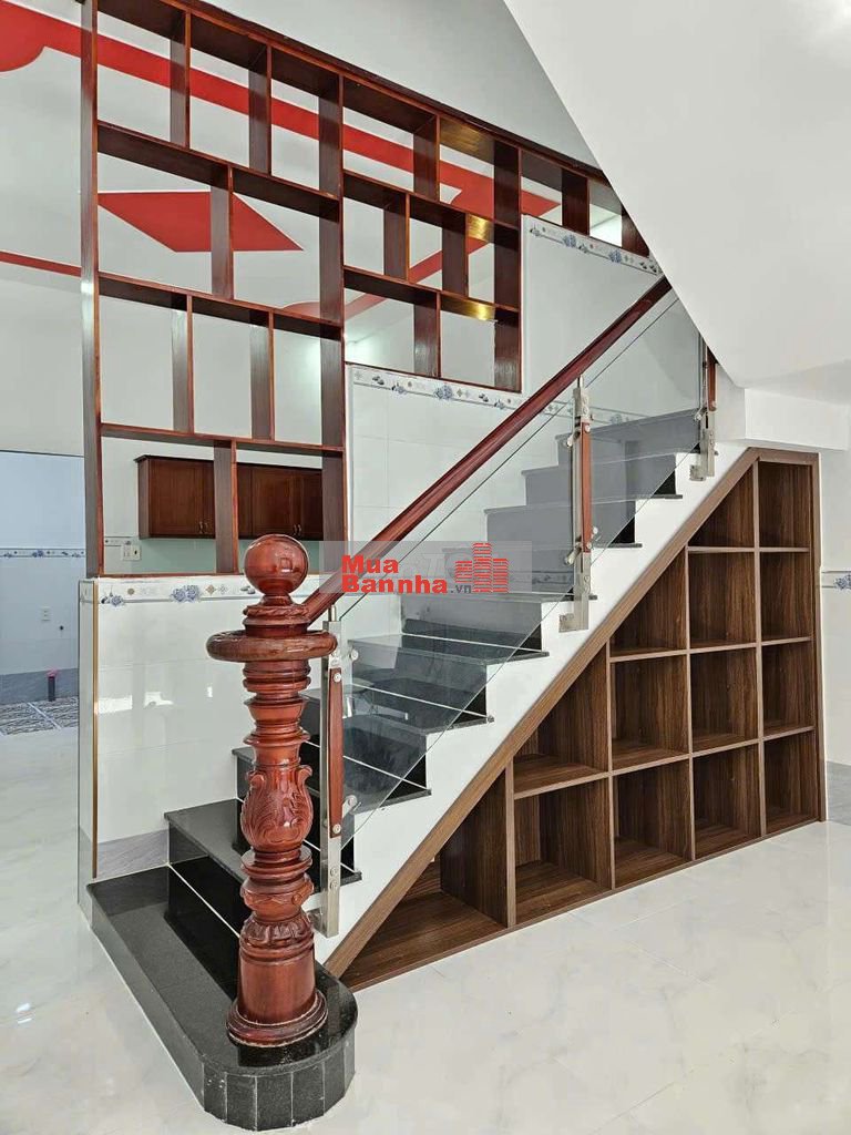 Nhà 1 trệt 1 lầu, 3 phòng ngủ, 2 toilet, phòng khách và bếp riêng.