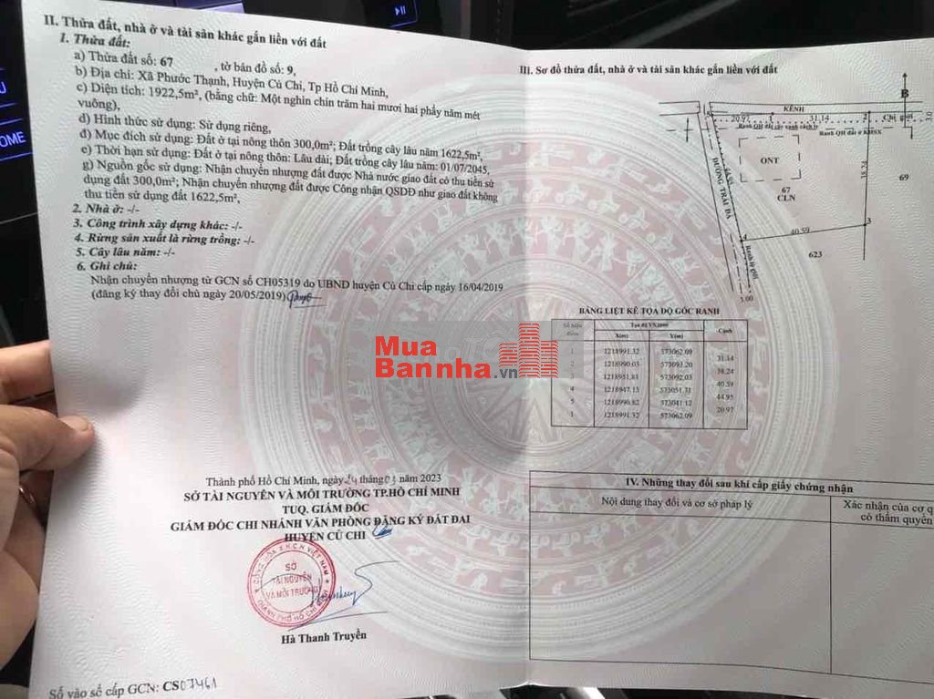 • Diện tích: 1922 m², trong đó 300m thổ cư.