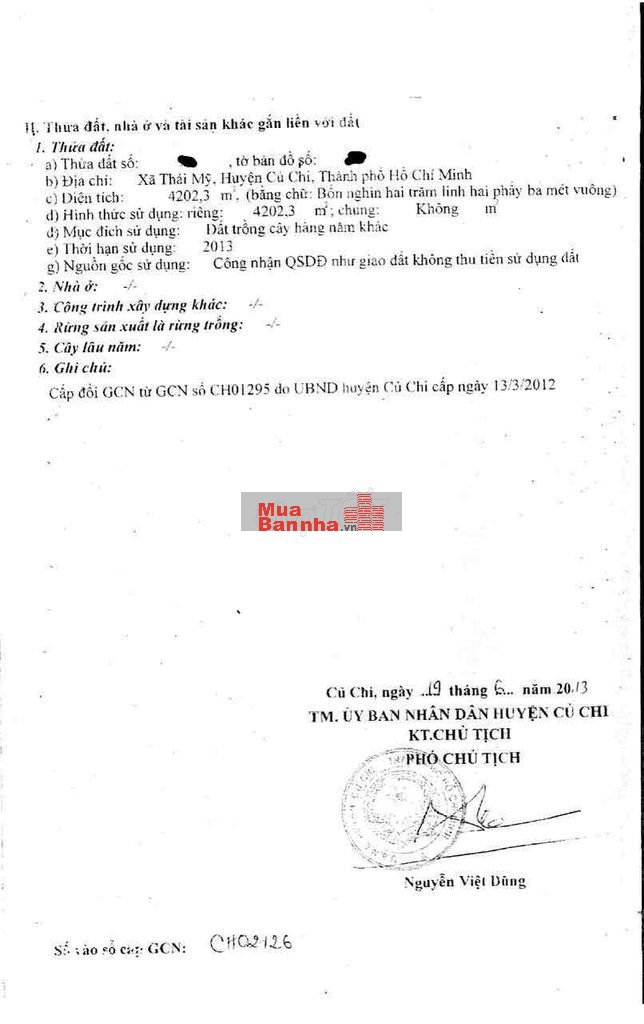 Quý vị đang xem nội dung tin rao "Bán Biệt Thự Củ Chi -4202 M2 (50 x84m ) - 2Tầng - HXT - Chỉ 8,5 Tỷ.". Mọi thông tin, nội dung liên quan tới tin rao này là do người đăng tin đăng tải và chịu trách nhiệm. Muabannha.vn luôn cố gắng để các thông tin được hữu ích nhất cho quý vị tuy nhiên Muabannha.vn không đảm bảo và không chịu trách nhiệm về bất kỳ thông tin, nội dung nào liên quan tới tin rao này.
