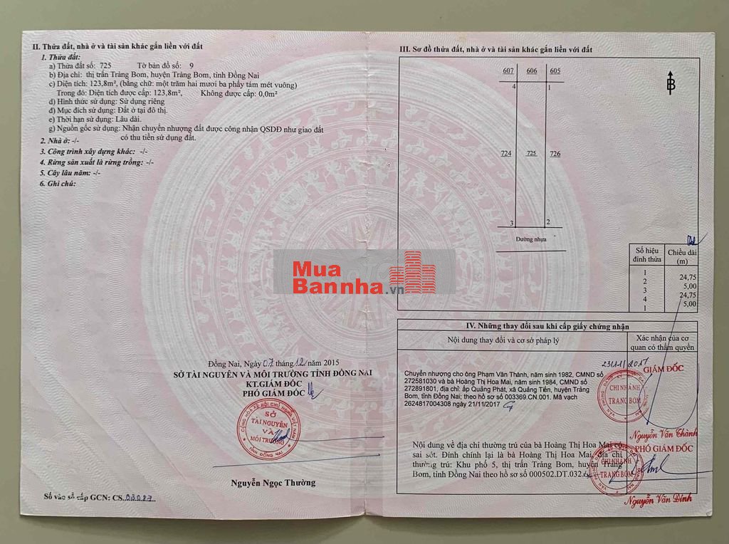 -diện tích đất 5x25, sổ riêng thổ cư 100%, sổ hồng số tờ 9, số thửa 725, giấy tờ đầy đủ - đường nhựa vỉ hè 14m, điện đường âm, nước máy đầy đủ