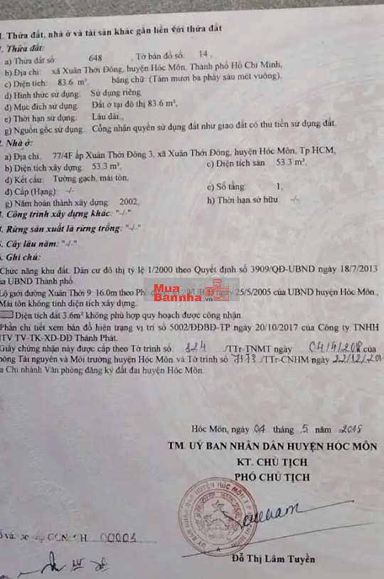 - Nhà Sổ Hồng Riêng C4 cũ dt 83m2 mặt tiền Xuân Thới Đông_ gần nhà thờ Bùi Môn. Xe tải lớn đậu cửa, dân cư hiện hữu, k mồ mả, k ngập úng